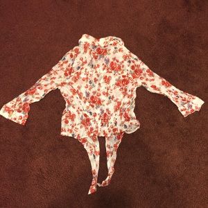 Women’s 3/4-long sleeve floral patterned. Button down that ties at the waist