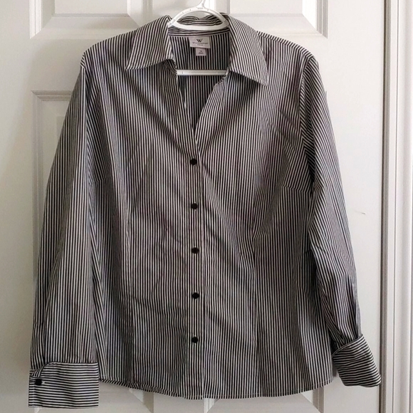A beautiful button down with a stretch. In great shape! Has a nice flattering neckline