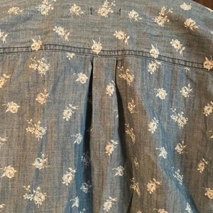 Old Navy button down top. With a girly fit. Blue Jean material with floral pattern. Like new. Smoke and pet free home. No rips tears or stains.