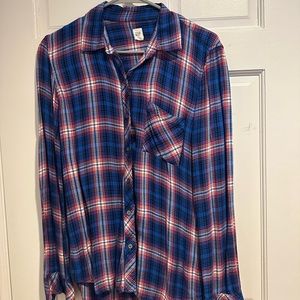 Women’s button down. Blue, white, black and red plaid. Size small. Only worn a couple times