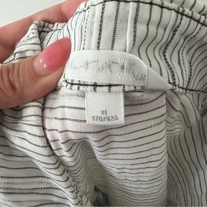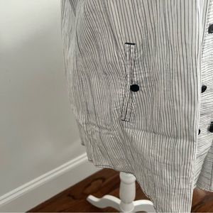 Womens button down collared shirt dress white black stripes pleated size large