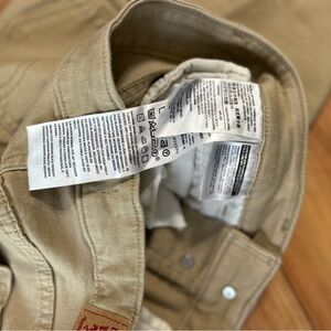 Elevate your wardrobe with these classic khaki Levi’s. Perfect for both casual settings, these pants offer comfort and style. High waisted for a vintage look. Tiny bleach dot on back of left pant leg. See photo