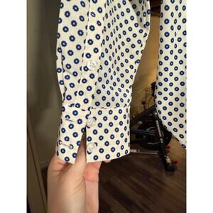 Ann Taylor Size 4 Button up blouse Buttons at wrist blue floral pattern
