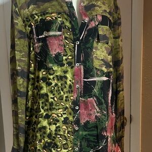 Women’s button up blouse camouflage animal print front pockets by Adore nwt