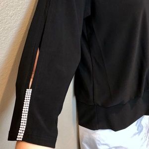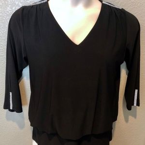 Women's cb Established Black Rhinestone V-Neck 3/4 Split Sleeve Jersey Top Sz PM
