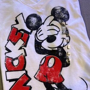 Classic Mickey Mouse T-Shirt. White with red and black graphic. Super soft- poly/rayon blend. Size L
