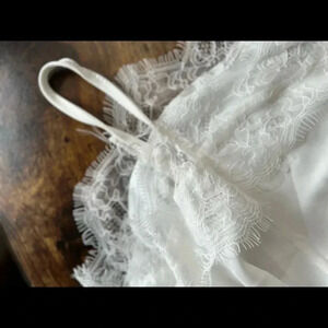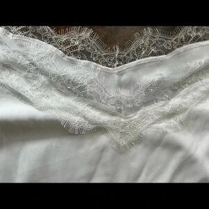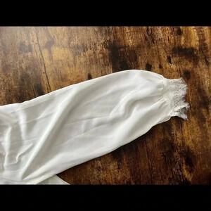 Lace shoulder & neckline. Long sleeves, button accent and lace at cuffs. Loose fit. Chiffon material. Never worn. NWOT. Off white/winter white color. Size: 2XL