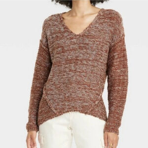 Women's crocheted knit dropped shoulder slouchy Heathered brown size Large