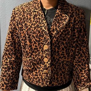 Women’s crop leopard print jacket. Size 16 by Metro Style. Curduroy