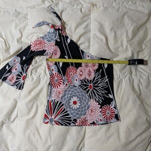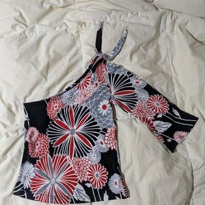 Cute black and red floral one shoulder top. Adorable knot on top of one shoulder. Tag is marked medium. Fits like a small. Has some stretch #floral