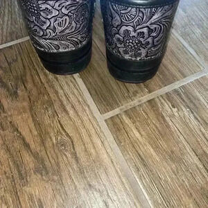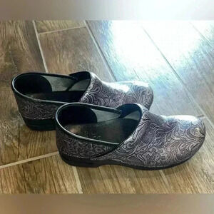 Women’s dansko clogs silver tooled floral