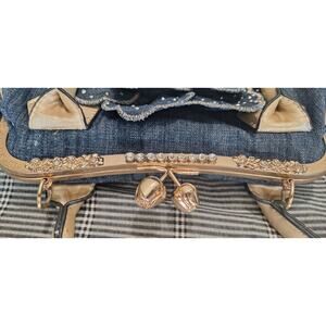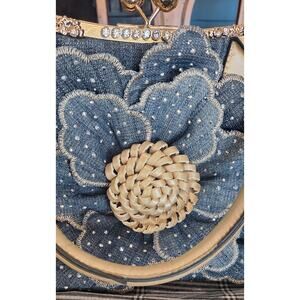 Women's denim casual handbag- flower & crystal embellishments- excellent