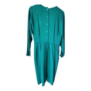 Women's dress emerald long sleeve KENAR2 100% Silk green back button neck size 6.