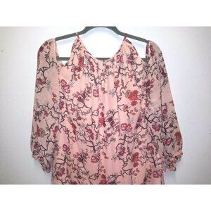 Womens dress floral cold shoulder sheath Stretch Sz M peachy Pink Max Edition