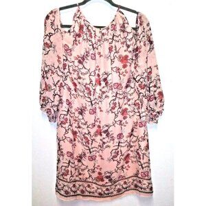 Max Edition Womens dress floral cold shoulder Sz M peachy Pink sheath lined STRETCH