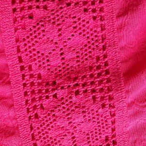 crochet flower design at waistline/short sleeves /textured design all over the dress