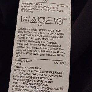 GAP high waist, wide leg full length pants. Fabric content in listing, but these are high quality, nicely draping full cut pants. They look and feel expensive. Waist is 38", length is 30 1/2". Pockets on the sides and in back.