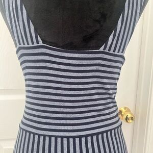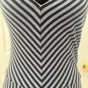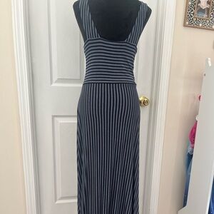 Women’s size medium, sleeveless, light blu and navy blue striped maxi dress. Rayon / spandex. Worn once, like new condition.
