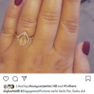 Womens 14K, size 7, rose gold wedding ring. Center stone is morganite. Outer stones are diamonds. Gorgeous unique ring :) the mens ring is size 10. It's more gold than the picture let's on. Matches the ring perfect. Original package never worn. Bought at separate retailer that doesn't offer insurance