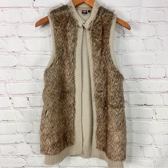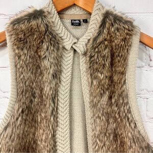 Womens faux fur vest small Brown Angora Lined Open Front Sleeveless Sweater