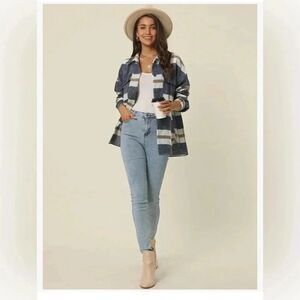 Women's flannel plaid long sleeved button down shirt jacket with pockets size S
