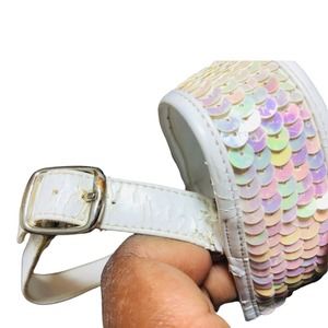 Women's flash point sz 12 "UNCANNY" white sequin square toe chunky sandals