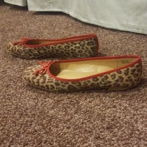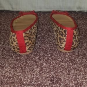 Leapord womens flat with red detailed lining and bow. Great condition. Hardly worn. Size 9