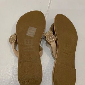 The color is a light tan or beige, and the sandals have a flat sole, typical for casual summer footwear.