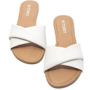 Womens flat sandals open toe faux leather slides cushioned summer slippers