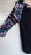 ••FLAWS: wash wear, pilling, small holes as pointed to in photos. This relaxed-fit top features a solid black body paired with vibrant blue floral raglan sleeves. The 3/4 length sleeves add a stylish touch, making it a versatile choice for casual outings.
