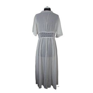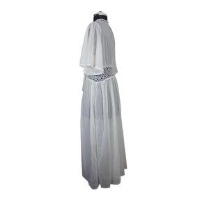Women's flutter sleeve eyelet lace waist tie front bedroom robe nightgown XL