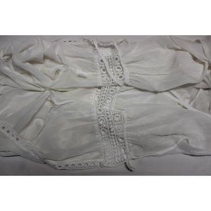 Sheer and delicate bedroom robe / nightgown with a light short flutter sleeve, eyelet detailed neckline and waist.