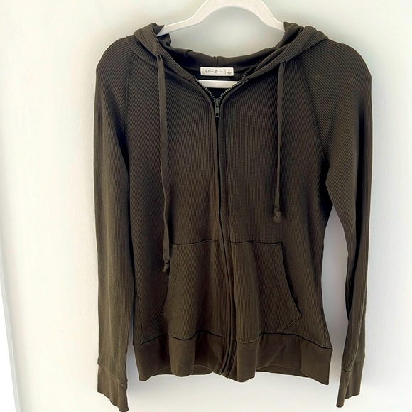 Super cute waffle material full zip with lots of stretch. Excellent condition. It is an army green color. Comes from a smoke/pet free home.