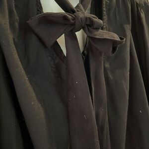 Such a fun blouse!!! V neck in the front and a fun tie in the back! Length: 25.5 Shoulder: 16 Bust: 22.5 Sleeve: 23