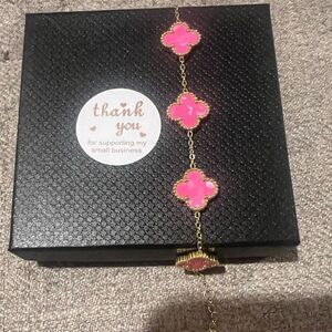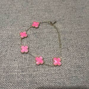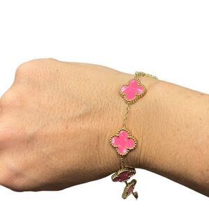 Women's gold plated hot pink 5 clover bracelet with lobster claw new never used gorgeous bracelet hot pink with mixture of white