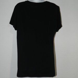 Women's graphic v-neck T-shirt printed with "That's What I Do - I Drink Wine & I Know Things" Shirt has short sleeves, black shirt with white and wine colored graphic.