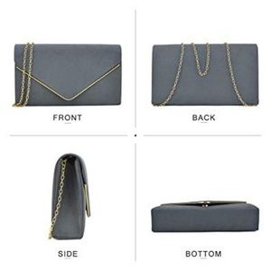 High quality velvet body framed by Gold-tone hardware with removable gold chain strap.
