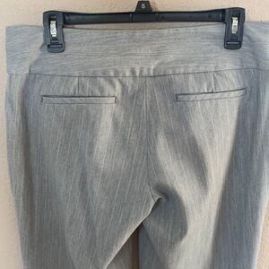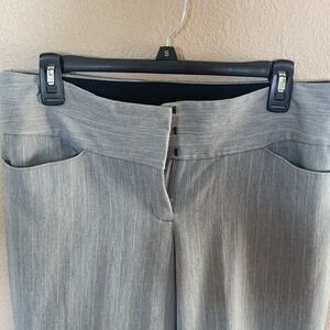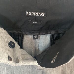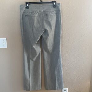 Gently worn Women’s gray and white Express bootcut dress pants size 8 regular. Inseam is 30” and the waist measures about 17”.