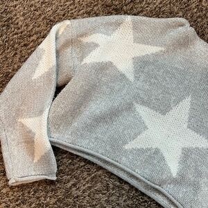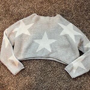 Women's gray and white star print cropped graphic thick knit sweater size small