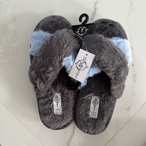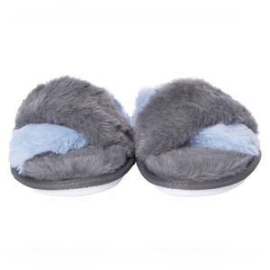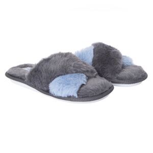 Women's gray faux fur x-band slide/slippers