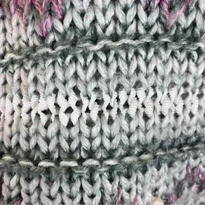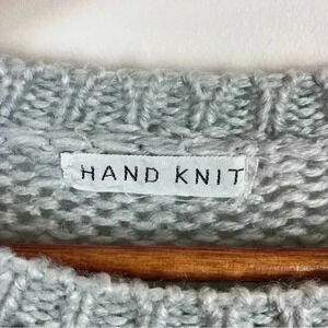 1990s style striped hand-knit sweater with beads. There are no material tags but it is some sort of acrylic. I’m guessing around a large. The pit to pit measurement flat is 19in. The length from shoulder is 21in. Some pilling. Please remember this is a hand-knit garment. Some pilling.