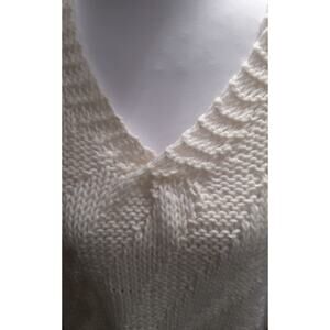Beautiful Ivory open knit pull over sweater women's size medium to be worn oversized or could be a size large more fitted. The style of the sweater is timeless classy yet could be worn also boho Coastal core country Coastal the stitching is full and has a beautiful diagonal design due to being handmade does have signs of slight irregularities but not flaws just can tell it wasn't pumped out at a factory the shirt is in great condition would look beautiful layered this fall and winter very cozy see photos for extra description