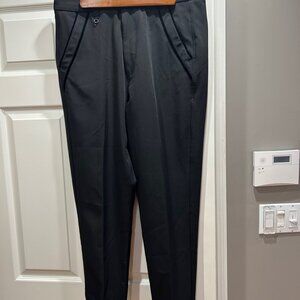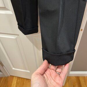 Elevate your wardrobe with these exquisite women’s high-end designer pants, offered in a sophisticated black hue. These pants are tailored in size US 10, ensuring a flattering fit for discerning fashionistas. Crafted from premium materials, they promise comfort without compromising on style. The pants feature a sleek silhouette with a high-rise waistband, enhancing your natural shape while providing a secure fit. With meticulous tailoring and fine attention to detail, these designer pants boast front pleats and a cuffed hem, adding elegance to any ensemble. Perfect for both formal and casual occasions, pair them with your favorite blouse or blazer for an effortlessly chic look. Experience luxury fashion at its finest with these timeless wardrobe staples.
