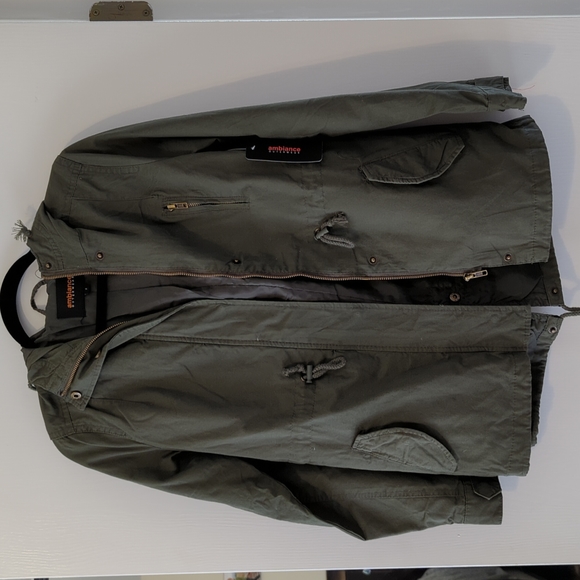 army green cargo style jacket with tags on. never worn by ambiance outerwear