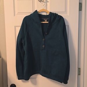 Eddie Bauer women's hooded pullover jacket. Fleece lined. Dark teal color. Size XL. Excellent condition. Only worn once