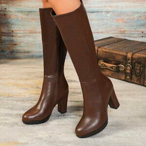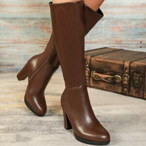 get ready for the season in these Women's Thick High-Heeled Platform knee high boots