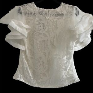 NWT Women’s lace blouse with beautiful sheer flutter sleeves. Size S.