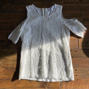 Beautiful white lace top that pairs great with dress pants or jeans and everything in-between.