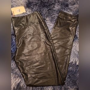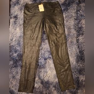 Pair of women's entro faux leather mid rise leggings. Size large new with tags. Very stretchy in excellent condition and are really good quality in this line of faux leather pants.