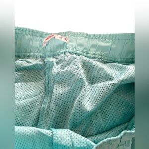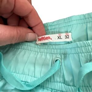 Womens light teal green background sport short stretch slinky nylon, elastic waist sport short new with tag